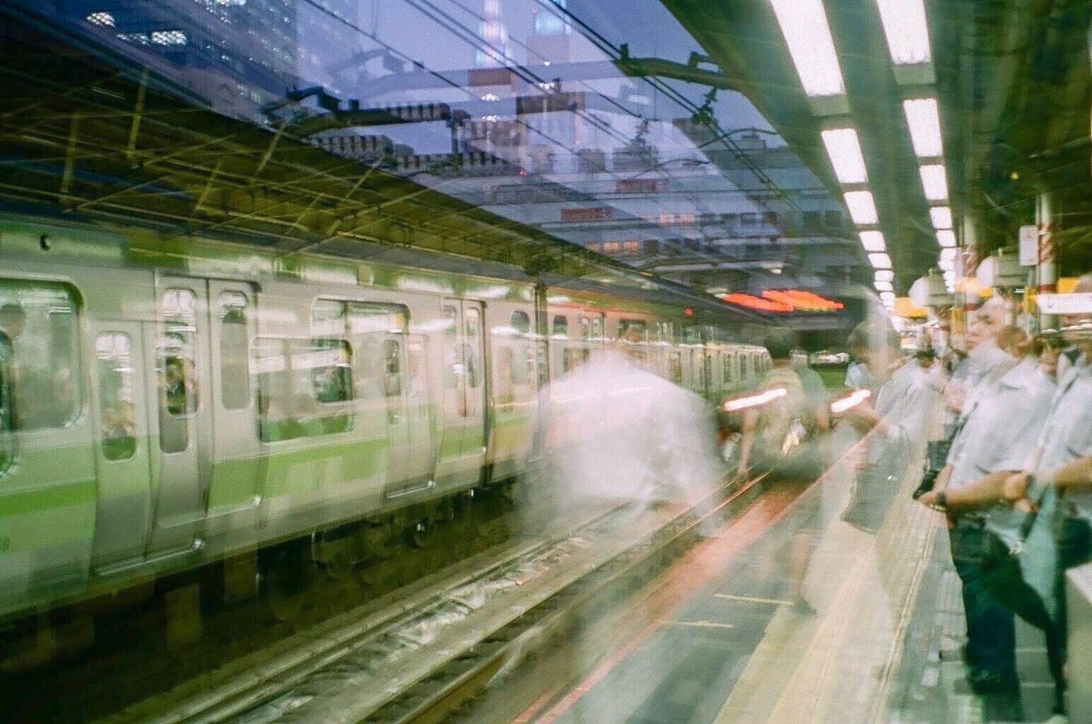 新宿駅ホームからの日常をTシャツに落とし込みました。